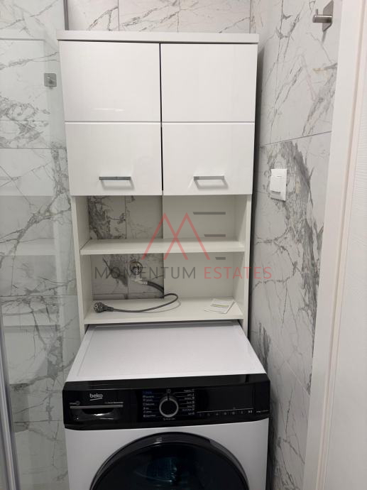 An apartment is for rent in a sought-after location, in a modern new building. Heating is gas, individual, and it has built-in air conditioning, while the bathroom has underfloor heating. It is equipped with all appliances including a microwave, washer/dryer, dishwasher, and two TVs. The apartment has a beautiful view of Kvarner. It includes a parking space in the garage and a storage room. The apartment is modernly furnished, equipped with video surveillance, security doors, and an elevator. It is rented for a minimum of one year. Pets are not allowed. Deposit €1500.