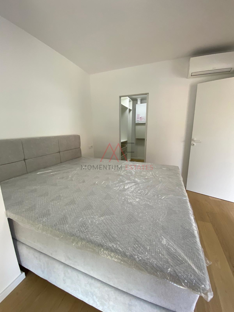 U predivnoj novogradnji na zametu iznajmljujemo kompletno namješten i opremljen dvosobni stan s dnevnim boravkom. Stan ima apsolutno sve pogodnosti za dugoročni najam i udoban život. Osim prostranog tlocrta koji uključuje dvije spavaće sobe, kupaonicu, dnevni boravak sa kuhinjom i blagovaonom, stan ima i dva parkirna mjesta u garaži, podno grijanje i klime kroz cijeli stan, hibridna dizalica topline Daikin.